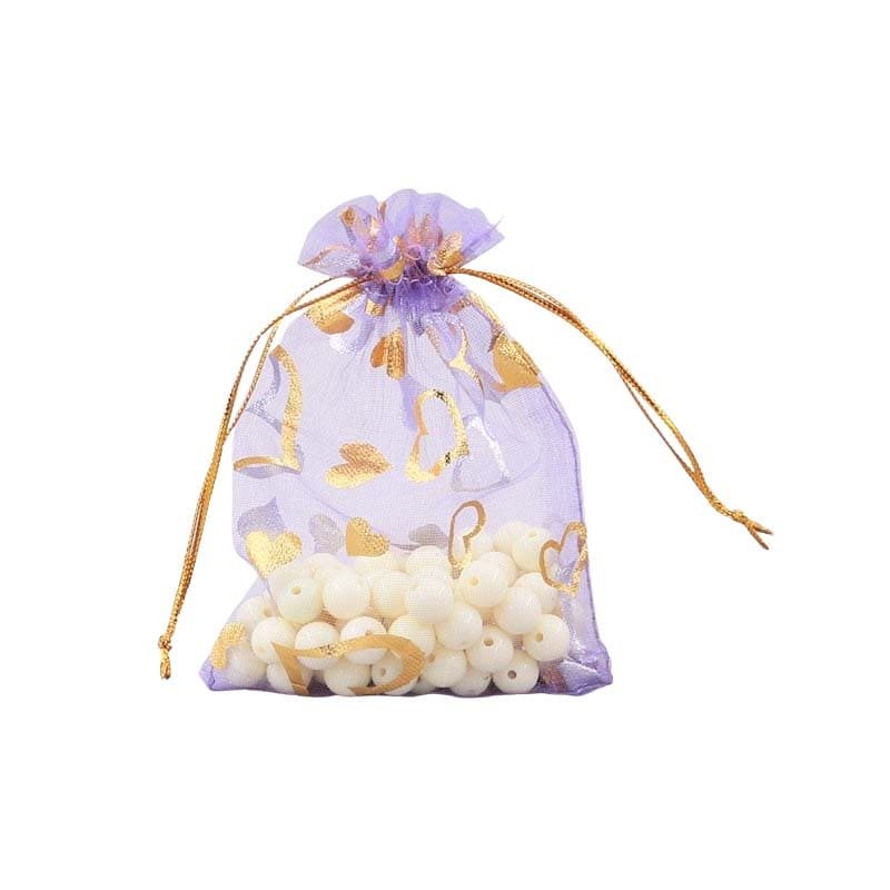 Light Purple Organza Bags with Hearts Pattern - 100pcs